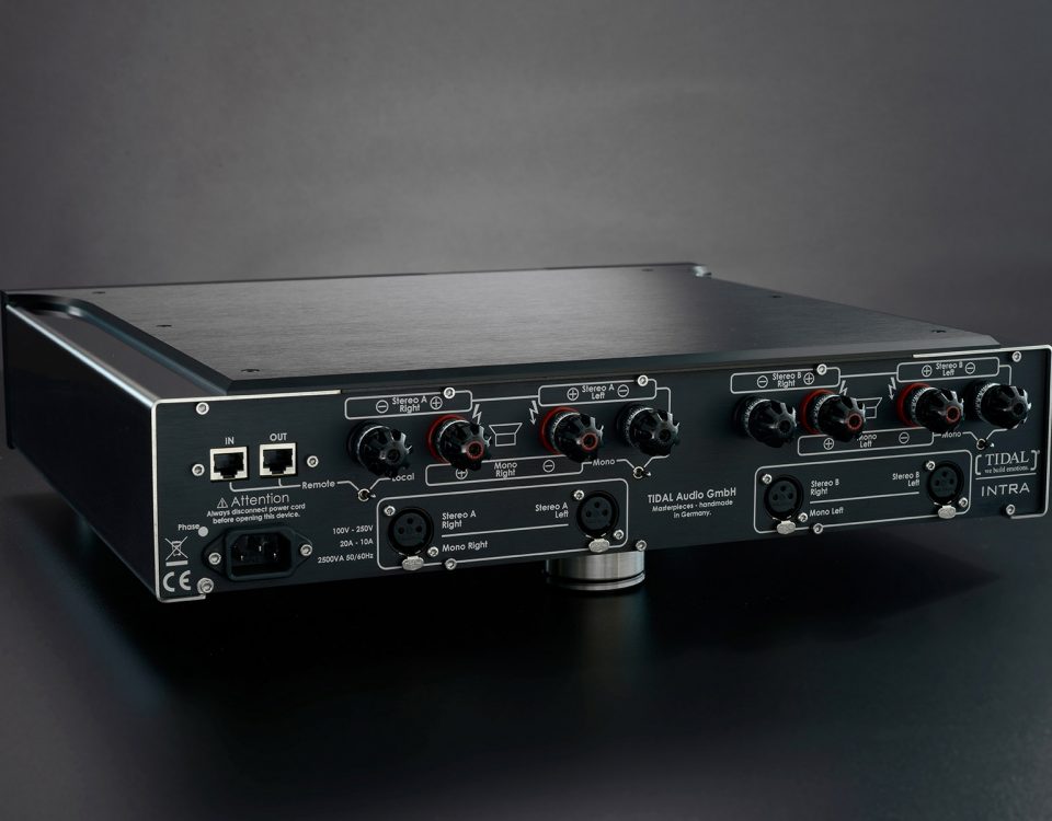 What might look at a first view as multi-channel purpose amplifier - is more than that. The TIDAL Intra is first and above all a high end stereo power amplifier. It contains two physically divided stereo modules inside, built like a dual mono power amplifier.